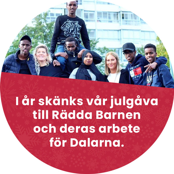 I stället för att skicka julkort skänker vi en julgåva till Rädda Barnens viktiga arbete i Dalarna för barn i olika utsatta situationer.