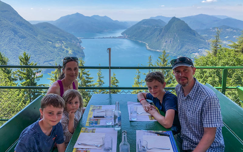 Familjen bor i Östersund och tog tåget till Stockholm för att sedan fortsätta med nattåg till Köpenhamn och vidare till Tyskland. Ytterligare ett nattåg senare vaknade de i Basel i Schweiz och kunde enkelt ta ett lokalt tåg till Lugano. Där stannade familjen i nästan två veckor innan de återvände hemåt via Zürich, Hamburg, Billund med Legoland och Göteborg.