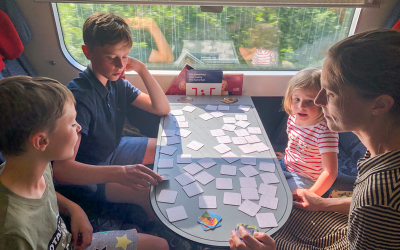 Ingen av familjerna tyckte att det var krångligt att tågresa med barn. Att kunna gå omkring, spela spel, äta mat och titta på djuren och landskapet utanför fönstret var uppskattat av både stora och små.