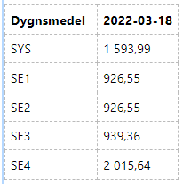 Priserna ovan är i kronor/MWh, 100 kronor/MWh=10 öre/kWh.
