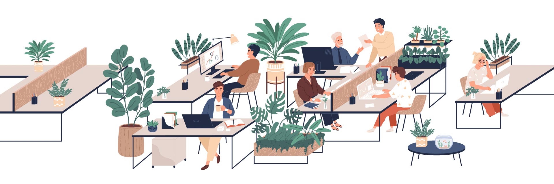- Utnyttja dagsljuset genom att placera arbetsplatser nära fönster och använd ljusa färger på väggar och tak för att reflektera och sprida ljuset.